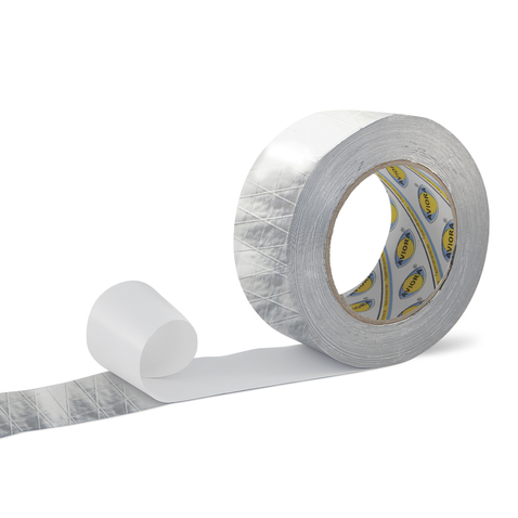 Алюминиевая армированная клейкая лента представляет собой основу из слоев алюминиевой фольги и специальной бумаги, между которыми располагаются синтетические волокна, с последующим нанесением акрилового клеевого состава на нижний слой. Применяется для проклеивания стыков и швов при монтаже отражающей изоляции с целью снижения теплопотерь, для защиты от проникновения пара, предотвращения коррозии, для герметизации соединительных швов труб, воздуховодов, корпусов, узлов и при других строительных, ремонтных, монтажных работах. Обеспечивает прекрасную теплоизоляцию поверхности. Благодаря синтетическим волокнам и дополнительному слою специальной бумаги соединение способно выдерживать дополнительные механические нагрузки, в отличие от обычной алюминиевой клейкой ленты. Лента поставляется в рулоне, при этом клеевой слой защищен дополнительным вкладышем (защитным слоем).