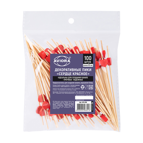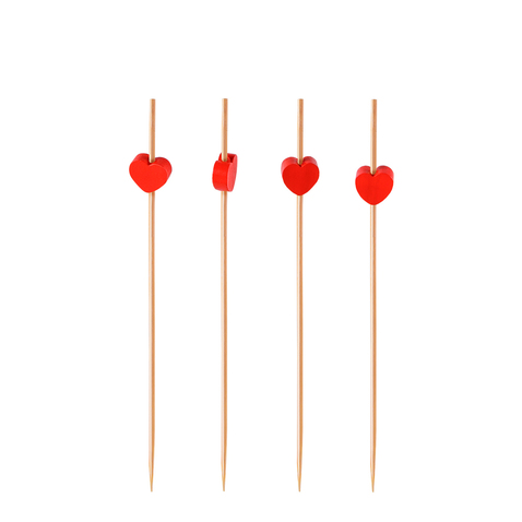 Декоративные пики из бамбука «Сердце красное», 120 мм, 100 шт/уп