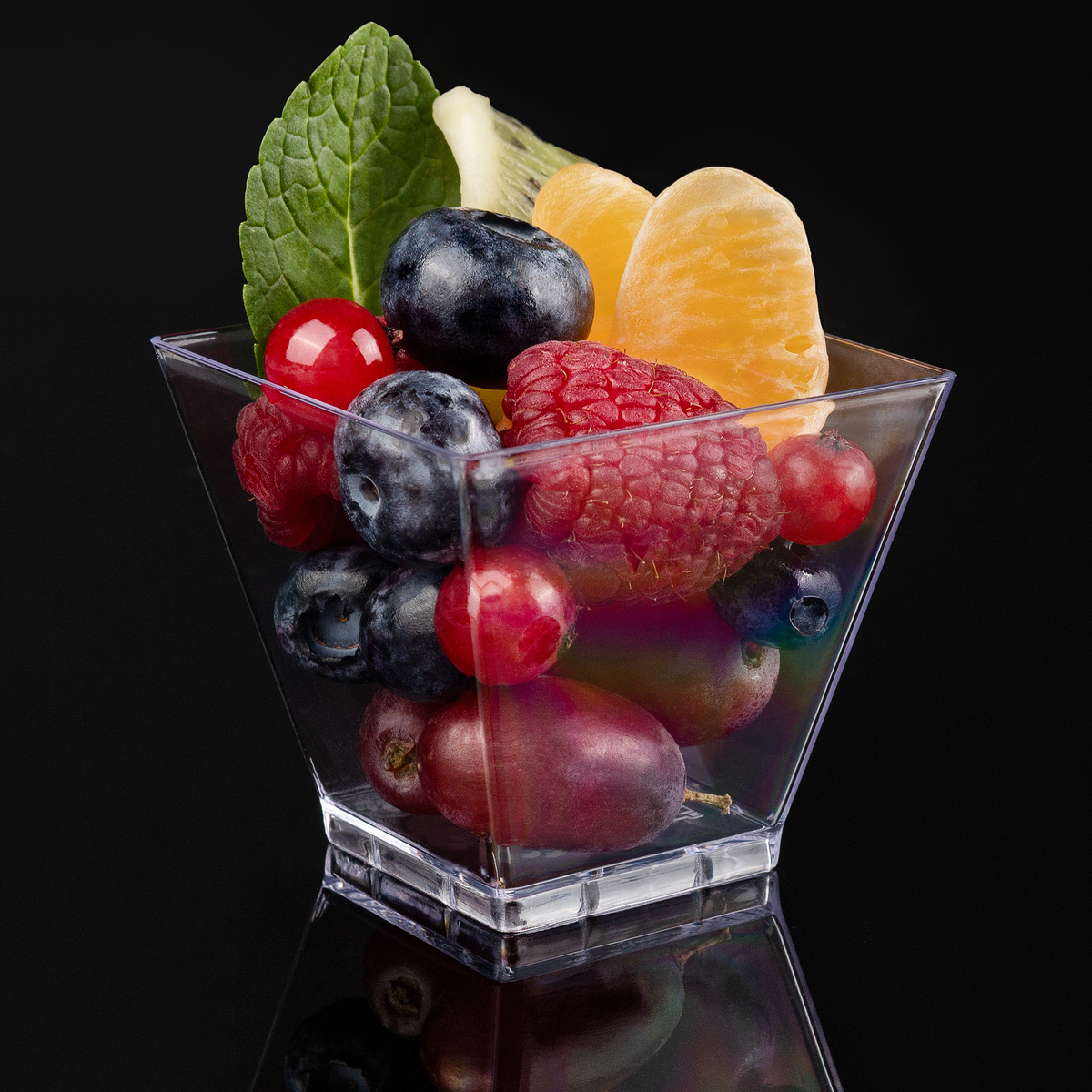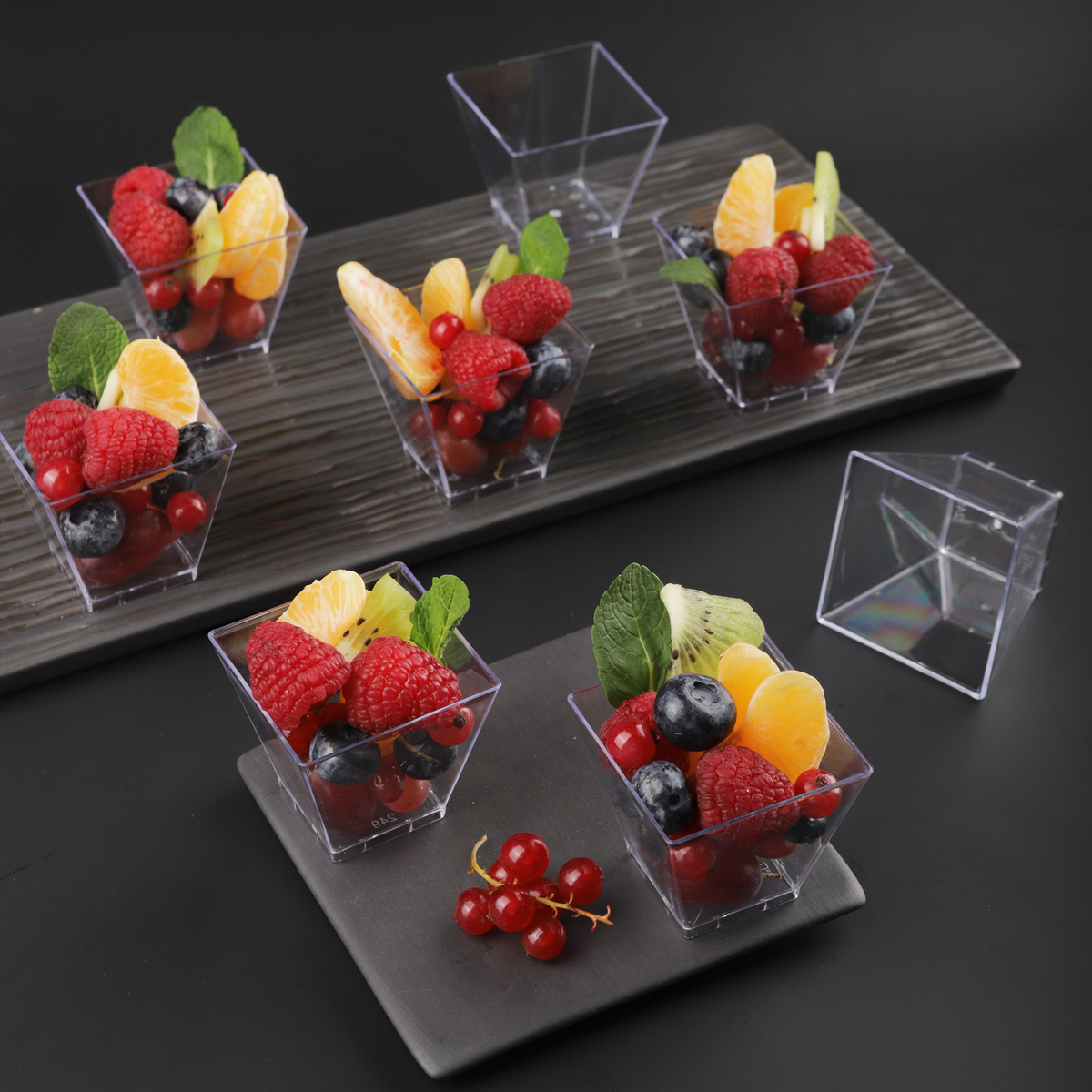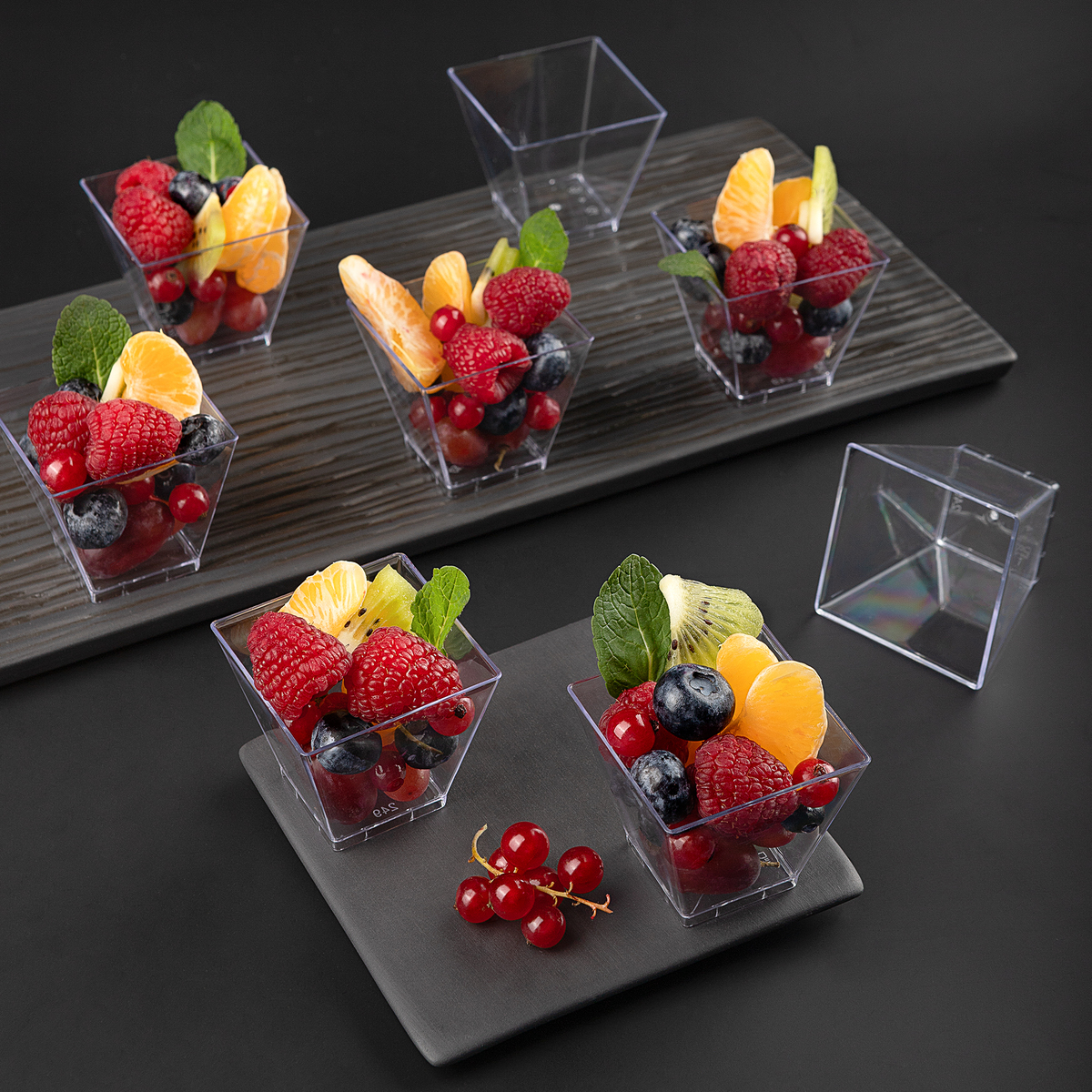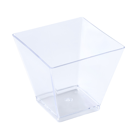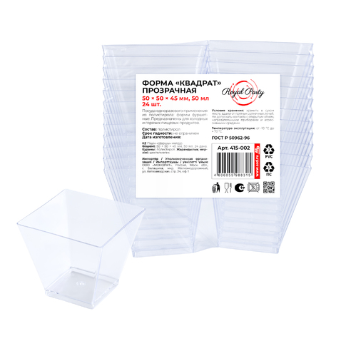 Одноразовые фуршетные формы для сервировки стола на праздники, банкеты, для фуршета, кейтеринга. Форма "Квадрат" имеет гладкую фактуру и текстуру, её приятно держать в руках. Используется в кафе, ресторанах, кондитерских и других заведениях общественного питания для подачи десертов, закусок, фуршетных блюд, комплиментов от шеф-повара, мороженого, салатов, соусов, джемов, сухих закусок. Рекомендуется использовать в температурном диапазоне от -10 °С до +70 °С. При сильном нагревании, выше 85°С, деформируется. Изготовлена из полистирола. Размеры формы: 50x50x45 мм. Объём: 50 мл. Цвет: прозрачный.