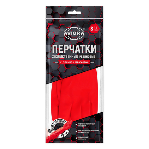 Хозяйственные перчатки резиновые с удлиненной манжетой, 1 пара, размер S
