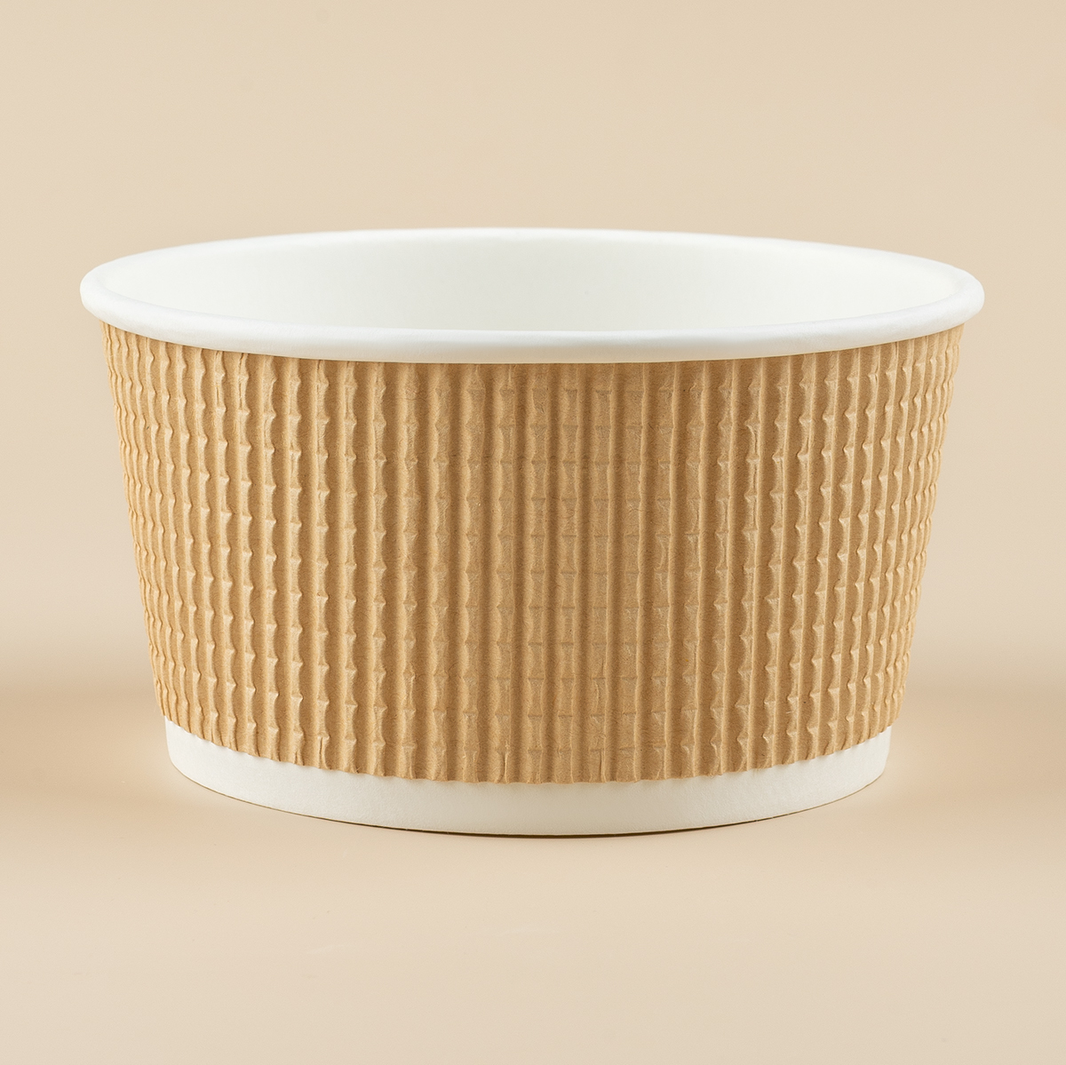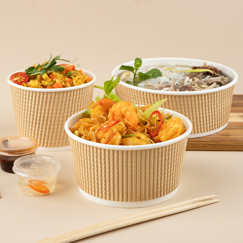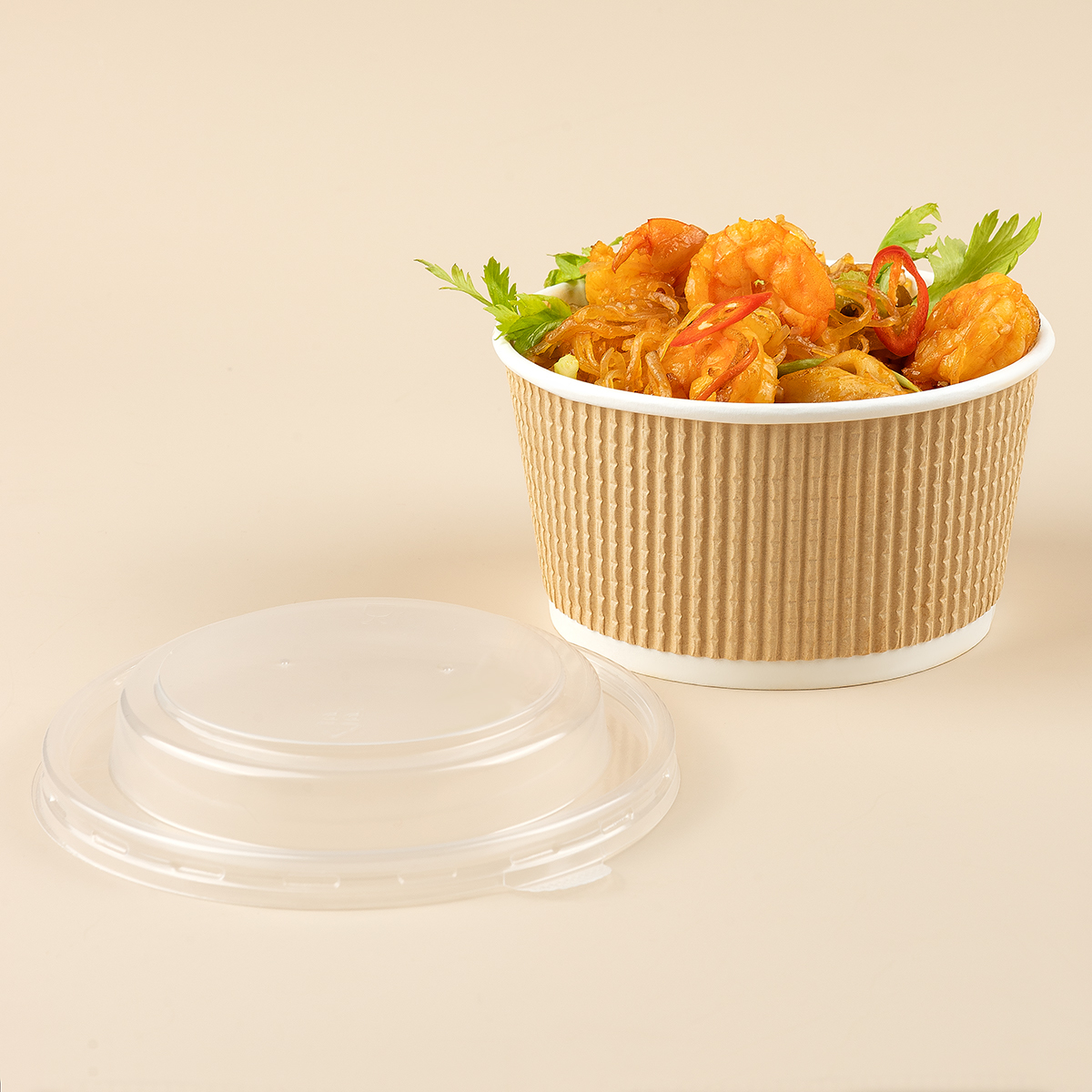 Одноразовый гофрированный контейнер - это отличный выбор для ресторанов, кафе, баров и других заведений общественного питания. Он изготовлен из прочной и износостойкой крафтовой бумаги, которая не теряет форму и не промокает благодаря устойчивости к контакту с водой и жиром. Благодаря крышке и толстым стенкам контейнер долго удерживает тепло внутри, что позволяет сохранить температуру блюда и его вкусовые качества. Материал контейнера не токсичен, поэтому не оставляет постороннего запаха на еде. Контейнер можно использовать для разогрева пищи в микроволновой печи и для хранения еды в холодильнике. Крафт-контейнер подходит как для холодных, так и для горячих блюд. Внешняя сторона контейнера имеет гофрированную поверхность, что придаёт ему дополнительную прочность и устойчивость к деформации. Объем контейнера - 720 мл, диаметр - 135 мм, высота - 68 мм.