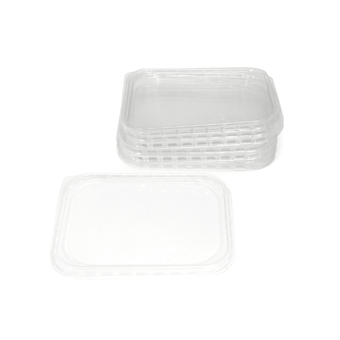 Пластиковые крышки плотно закрывают формы с G-краем и придают им дополнительную жёсткость. Основное преимущество пластиковых крышек заключается в том, что потребителю видно содержимое контейнера, это позволяет вызвать больше доверия, заинтересовать внешним видом продукта и этим простимулировать к покупке.