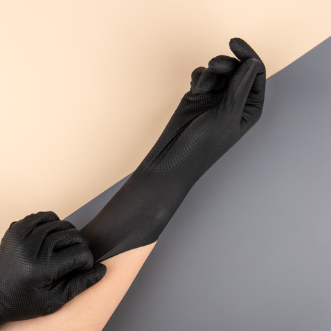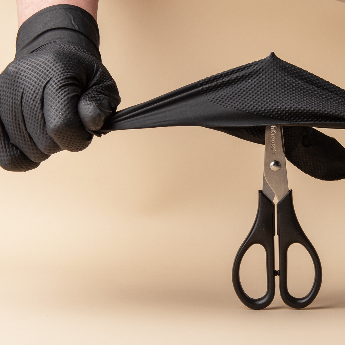 Нитриловые перчатки Алмазный хват (Diamond Grip) – это особо прочные, устойчивые к разрывам и повреждениям перчатки. Они в три раза плотнее, чем обычные нитриловые перчатки. Ромбовидная текстура обеспечивает удобный захват и отсутствие проскальзывания. Текстура в области пальцев обеспечивает надежную фиксацию инструмента. Имеют высокую устойчивость к воздействую масел, спиртов и различных химических составов (продуктов нефтепереработки при различных видах работ). Обладают хорошей износостойкостью и прочностью, что позволяет работать в них гораздо дольше. Материал не вызывает аллергии. Отличная сенсорная чувствительность при работе с гаджетами. Предназначены для защиты кожи рук при обработке пищевых продуктов, уборке, в сельском хозяйстве, полиграфии, строительстве, автомобильной промышленности, гальванике, очистке отходов, в домашнем хозяйстве.