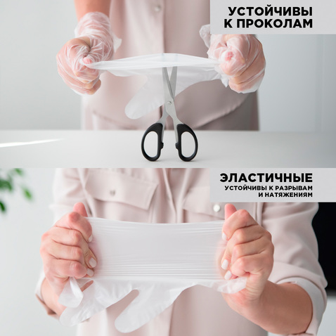 Перчатки из термопластичного эластомера обладают высокой эластичностью и плотно облегают запястья. Надежный обхват запястья достигается при плавном растягивании манжеты перчатки по направлению к локтю. Таким образом перчатка не спадет во время работы, а оптимальная длина манжеты обеспечит лучший обхват. Благодаря текстуре поверхности, эластомерные перчатки особо ценятся в заведениях азиатской кухни, т.к. к ним не прилипает рис, в отличие от некоторых других видов перчаток. Прекрасно оберегают руки от воздействия бытовой химии, грязи, пыли, жира. Не впитывают неприятные запахи и не окрашиваются. Перчатки универсальной формы, что позволяет использовать их для обеих рук. Используются для хозяйственных работ, при проведении парикмахерских и косметологических процедур, на пищевых производствах.