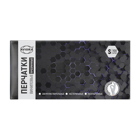 Перчатки виниловые, прозрачные, размер S
