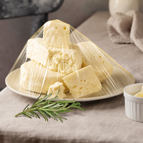 Пищевая плёнка предназначена для упаковки холодных пищевых продуктов. Позволяет сохранить свежесть и вкусовые качества продуктов, а также препятствует потере влаги и заветриванию упакованных продуктов. Плёнка препятствует смешиванию запахов продуктов при хранении. При изготовлении плёнки используется только первичное сырьё, так как использование вторичного сырья делает её токсичной, агрессивной по отношению к пищевым продуктам. Определить наличие вторичных материалов в составе сырья можно по радужным разводам на поверхности полиэтилена и по мутности. Высокое качество сырья позволяет плёнке легко разматываться и хорошо растягиваться без потери прочности.