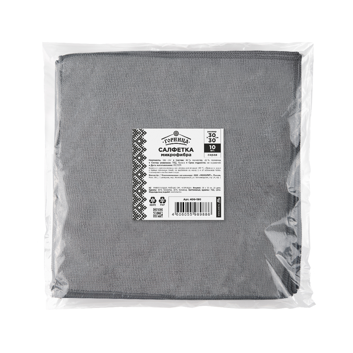 Салфетка из микрофибры «ГОРНИЦА» - это универсальное средство для ухода за поверхностями, позволяющее производить уборку без использования чистящих средств или с их минимальным количеством. Cалфетки предназначены для сухой и влажной уборки. Благодаря высокой плотности (180 г/м2) салфетки отлично впитывают влагу и эффективно удаляют загрязнения с различных поверхностей. Выдерживают до 300 циклов стирки. Салфетка из микрофибры под брендом «ГОРНИЦА» используется как в домашних условиях, так и в профессиональной сфере: в клининговых компаниях, ресторанах, магазинах, образовательных и медицинских учреждениях, в индустрии красоты и здоровья. В упаковке - 10 салфеток серого цвета.