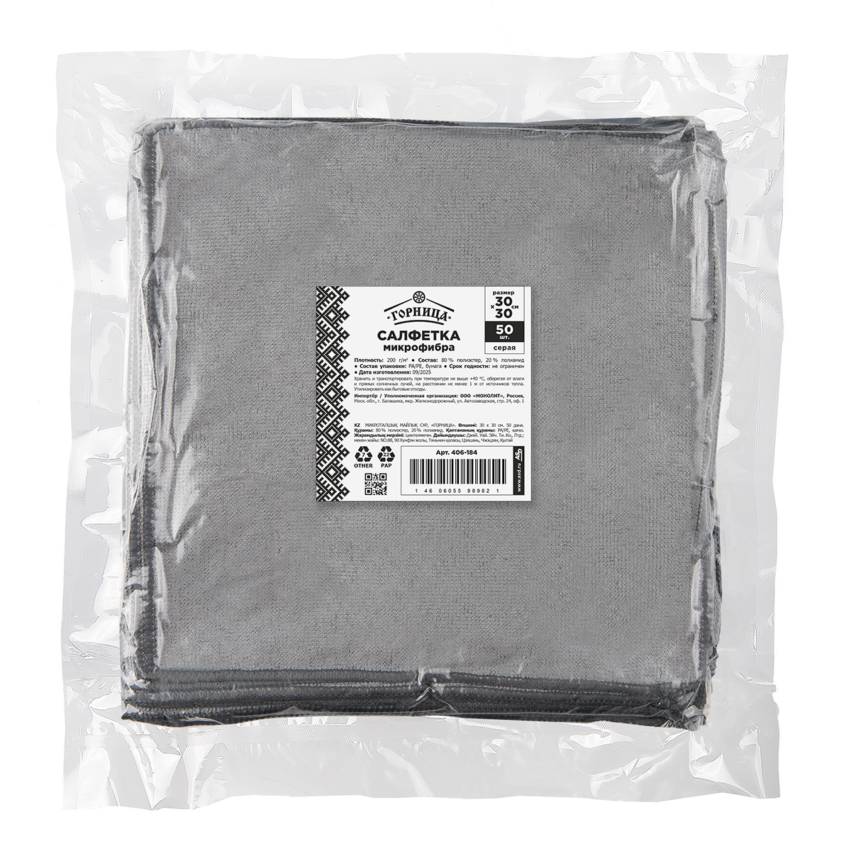 Салфетка из микрофибры - 30 х 30 см, серая, в вакуумной упаковке (50 шт.)