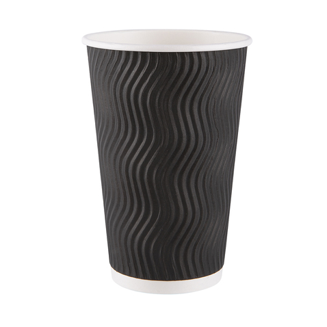 Трёхслойный бумажный стакан "Чёрная волна" гофрированный для горячих напитков идеально подходят для всех видов горячих напитков: кофе, чая, шоколада и т.д. Подходят как для использования в пунктах общественного питания, так и для служб кейтеринга и доставки. Стакан можно использовать в микроволновой печи и холодильнике, он обладает хорошей термоизоляцией благодаря наличию двух дополнительных слоёв картона. Не промокает от конденсата при наливании холодных напитков. Надёжная склейка, идеально закруглённый верхний край делает употребление напитка более комфортным. Изготовлен из сертифицированного сырья.