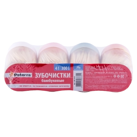 Зубочистки бамбуковые, 4 уп. по 300 шт/уп